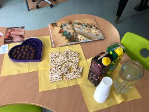 Heute fand die feierliche Erstbeichte statt und danach bot Religionslehrerin Isabel eine Jause, verknüpft mit einer Fragestunde, an, um die Nervosität der Kinder in Grenzen zu halten. Schulleiterin Petra Wolfsberger spendierte für alle Schokoherzen.