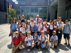Am 29.6.2021 machten wir, die vierte Schulstufe der ISK, einen interessanten Lehrausflug in unsere Landeshauptstadt St. Pölten. Unsere Direktorin Petra führte uns durch die Straßen dieser wundervollen Stadt. Wir bemerkten ziemlich bald, dass die meisten Gebäude im Barockstil errichtet wurden.  Unsere Tour begann beim Kaiserin Elisabeth-Westbahnhof. Wir lernten, dass dies der größte Bahnhof in ganz Niederösterreich ist. Unser Weg führte uns dann zur HTL St.Pölten, wo wir ein leckeres Lunch-Paket und ein Stadt-Heftchen bekamen.