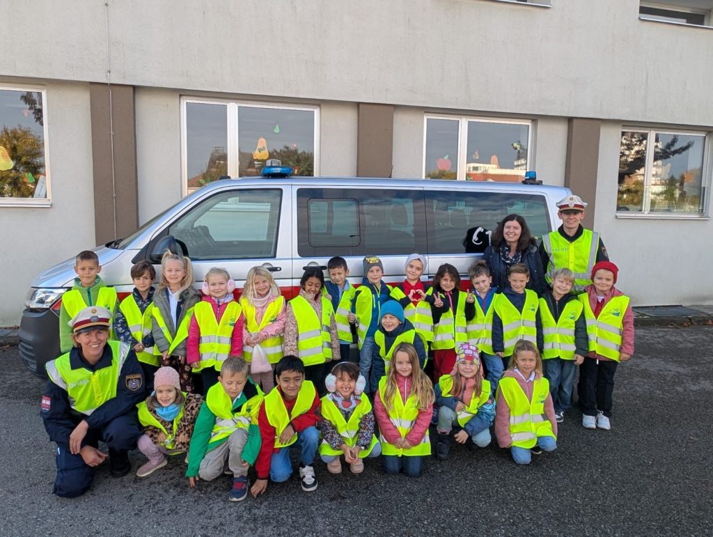Am Donnerstag, den 16. Oktober, hat die Kinderpolizei unseren Bienchen einen Besuch abgestattet. Nach einem kurzen, theoretischen Input in der Klasse, haben die Kinder gemeinsam mit der Polizei das richtige Überqueren des Zebrastreifens geübt. Alle Kinder haben die Aufgabe gut gemeistert und sind stolz in die Schule zurückgekehrt.