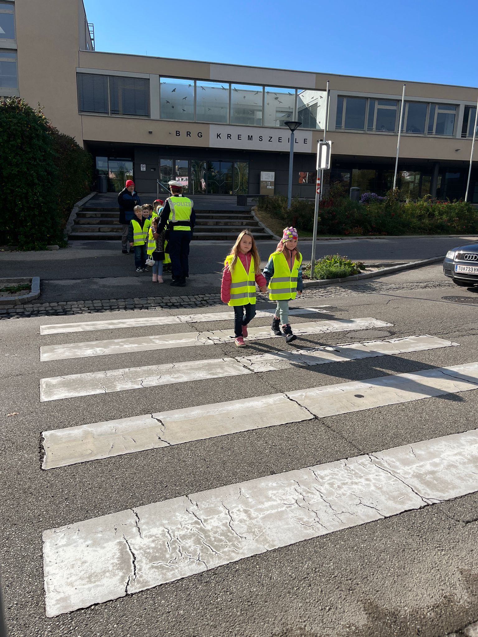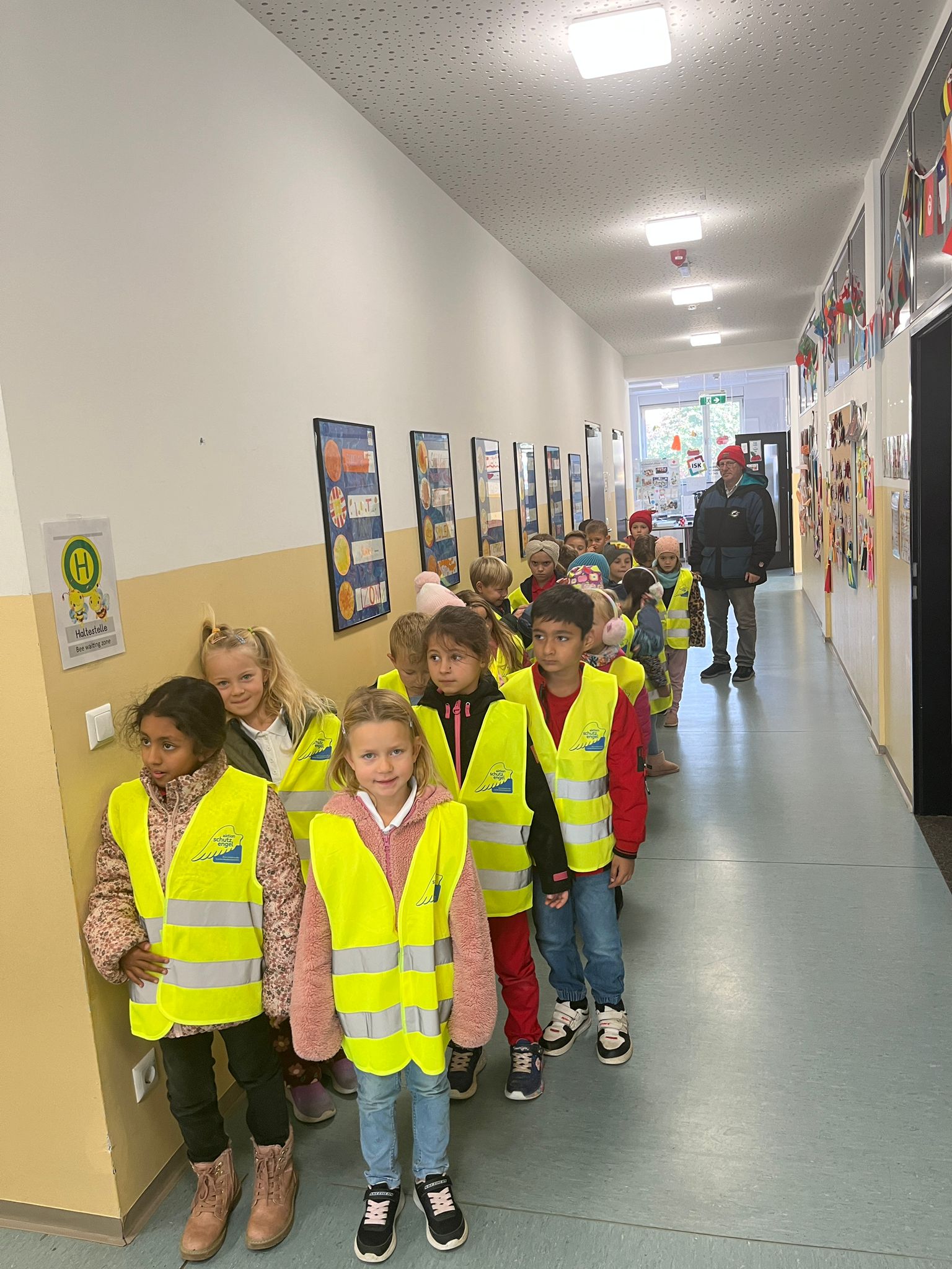 Am Donnerstag, den 16. Oktober, hat die Kinderpolizei unseren Bienchen einen Besuch abgestattet. Nach einem kurzen, theoretischen Input in der Klasse, haben die Kinder gemeinsam mit der Polizei das richtige Überqueren des Zebrastreifens geübt. Alle Kinder haben die Aufgabe gut gemeistert und sind stolz in die Schule zurückgekehrt.