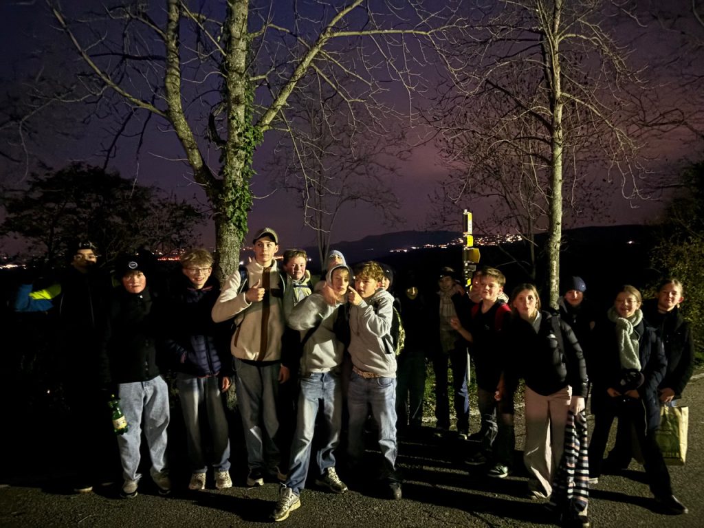 This year, the third grade reading night was all about exciting crime stories. Right at the start, the students were treated to a special adventure: equipped with headlamps, they hiked up the Göttweiger at dusk – the perfect way to get in the mood for an exciting night of crime stories.