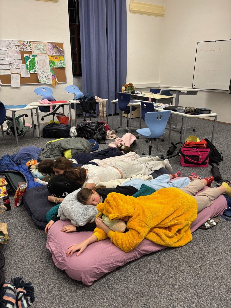 Back at school, the two classrooms were comfortably furnished. With mattresses and sleeping bags, they were transformed into a large sleeping quarters in no time. After a pizza dinner together, the highlight of the evening awaited: the crime escape rooms.With team spirit, combinatorial skills, and a dose of thrills, the children solved tricky puzzles and immersed themselves in mysterious cases.