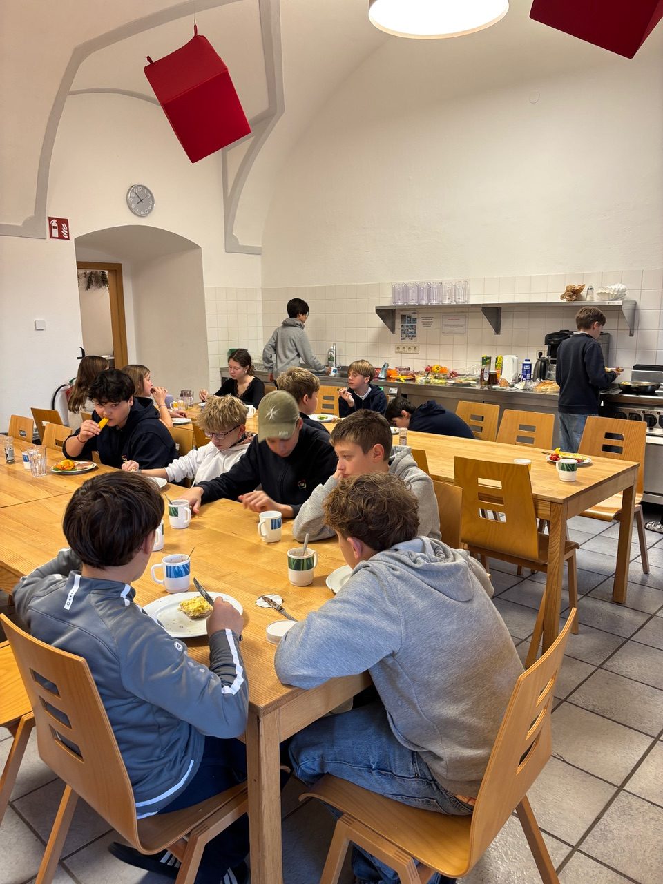This year, the third grade reading night was all about exciting crime stories. Right at the start, the students were treated to a special adventure: equipped with headlamps, they hiked up the Göttweiger at dusk – the perfect way to get in the mood for an exciting night of crime stories.